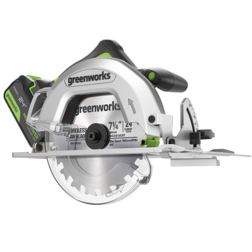 Greenworks 24V GD24CS (Арт.1500907) - отличная замена проводной циркулярной пиле. Бесщеточный двигатель обеспечивает мощность и эффективность для более длительного времени работы и более высокой производительности, чем аналогичные модели с щеточным двигателем.