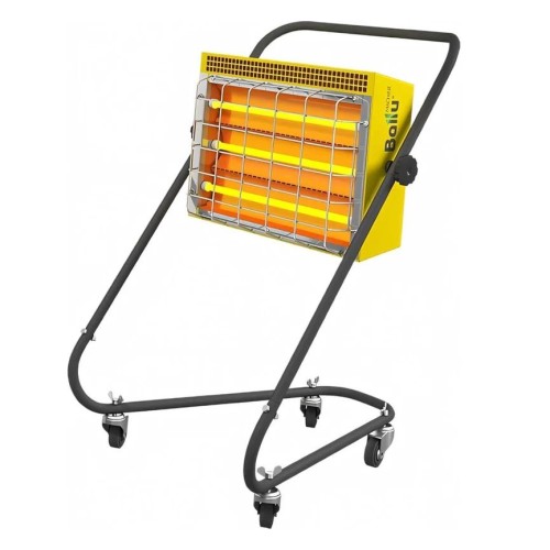 Обогреватель установлен на колесное шасси, что обеспечивает высокую мобильность. Опоры прибора имеют фиксатор угла наклона, позволяющий направить излучение обогревателя на необходимую высоту.