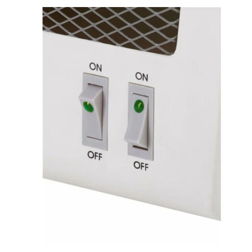 Управление прибором осуществляется при помощи блока управления, который включает в себя две кнопки с полной и половинной мощностью. Обогреватель мгновенно выходит на рабочую температуру.