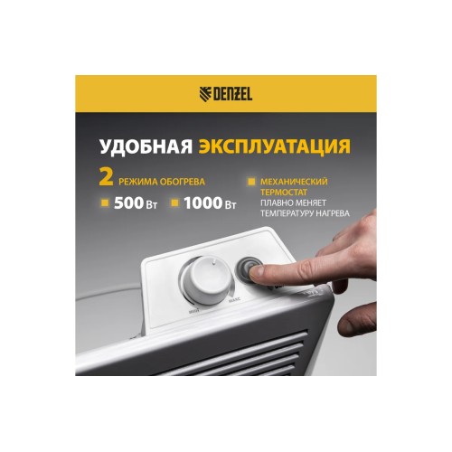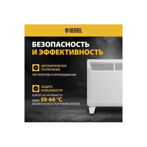 Электрический конвектор Denzel XCE-1000 с Х-образным нагревателем работает от сети 230 В, потребляет мощность 1000 Вт и используется в закрытых помещениях: квартирах, офисах, на производствах, в общественных местах и т.д.