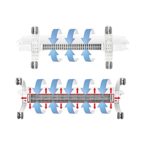 - Аэродинамическая система Intelligent Air Dynamic усиливает направленный конвективный поток на 37%, что обеспечивает самый быстрый нагрев помещения