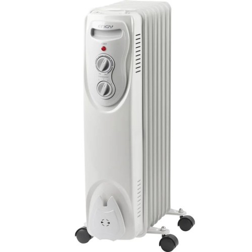 Масляный радиатор Engy EN-1307 предназначен для обогрева помещений. Мощность прибора составляет 1500 Вт. Радиатор легко перемещается благодаря ножкам на колесиках.