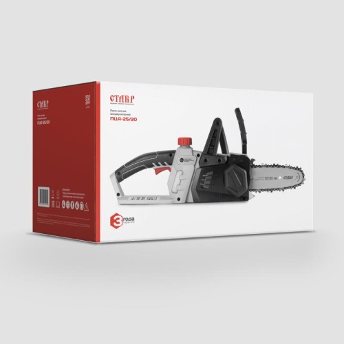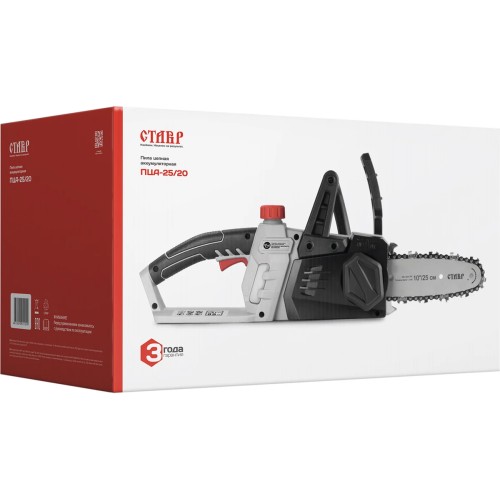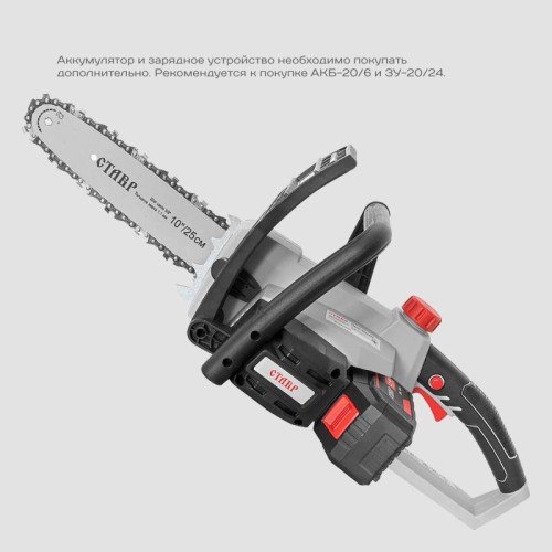 ЭРГОНОМИКА - прорезиненная рукоятка гарантирует повышенный комфорт и уменьшает утомляемость при продолжительной работе. КОМПЛЕКТАЦИЯ - шина, чехол для шины, цепь пильная.