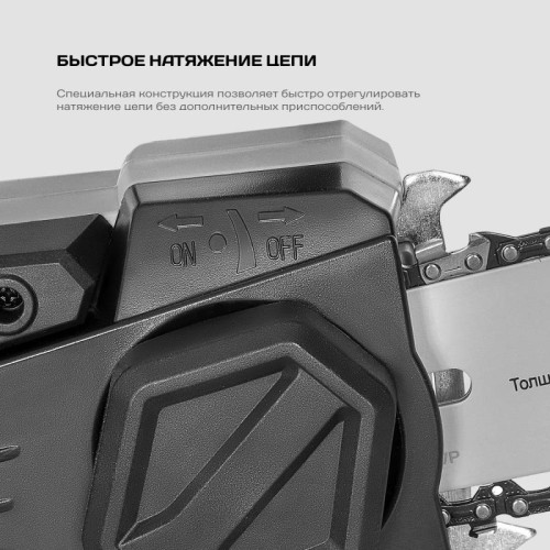 БЫСТРОЕ НАТЯЖЕНИЕ ЦЕПИ - специальная конструкция позволяет быстро отрегулировать натяжение цепи без дополнительных приспособлений.