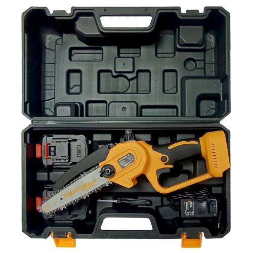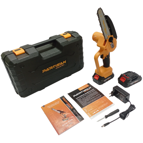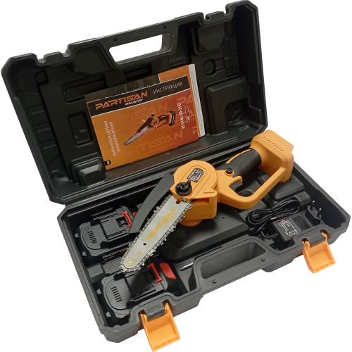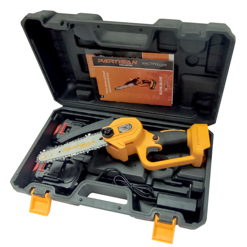 Пила мини-цепная аккумуляторная PARTISAN предназначена для обрезания веток деревьев толщиной до 60 мм. Для распила деревянных заготовок, досок и деревосодержащих материалов, толщиной не более 120 мм.