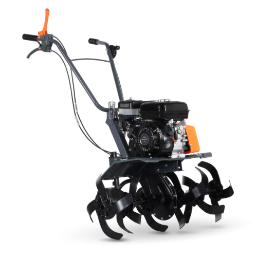 На рукоятке расположены органы управления, а рукоятка складная для удобства транспортировки и хранения. Кожух увеличенного размера, закрывающий приводной механизм ремней, предохраняет от попадания земли во время работы.