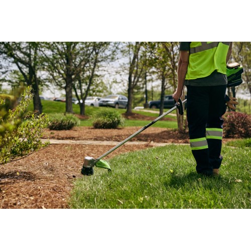 Удобная D-образная ручка позволяет легко “маневрировать” вокруг предметов даже в ограниченном пространстве. Триммер работает от аккумуляторной батареи 82V Commercial, которую можно использовать со всеми устройствами Greenworks из линейки техники 82 вольт.