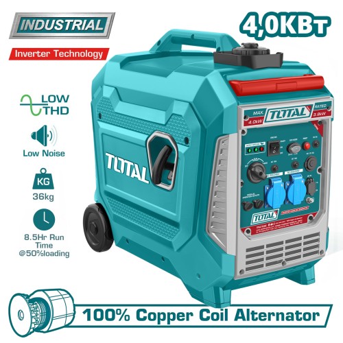 TOTAL TP547506E - небольшой инверторный (на выходе – «чистая синусоида») генератор номинальной мощностью 4,0 кВт- универсальный вариант как для обеспечения аварийного электроснабжения на, так и для организации питания приборов на выезде.