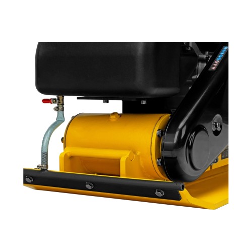 - Удобная работа с горячим асфальтом и липкими смесями — на виброплите установлен бак для воды, орошение уплотняемого покрытия предотвращает его налипание на основание плиты.
