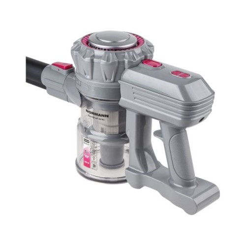 Первый в линейке NORMANN аккумуляторный пылесос имеет яркий дизайн, мощный двигатель и лёгкий корпус, который позволяет легко маневрировать вокруг мебели и подниматься по лестницам без необходимости подключения к розетке. А электрическая щётка с подсветкой проявит даже неочевидный на первый взгляд мусор и пыль.