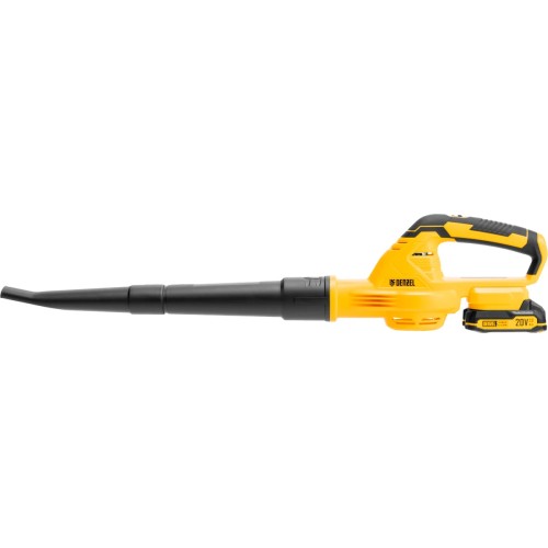 Аккумуляторная воздуходувка Denzel AB-500 работает от аккумулятора Li-Ion 20 В емкостью 2 А·ч и генерирует воздушный поток объемом 500 м3/ч со скоростью 60 м/с. С ее помощью можно очистить от листвы, травы и мусора дорожки, тропинки, различные площадки и труднодоступные места, а также собрать мусор в кучу.