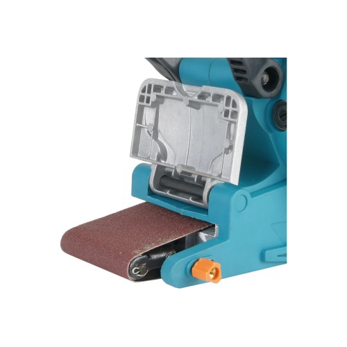 Конструкция модели позволяет быстро менять шлифовальную ленту, что экономит время пользователя. Благодаря небольшим габаритам инструмент без труда обрабатывает поверхность в труднодоступных местах. Обычная шлифовальная бумага для машины не подходит.