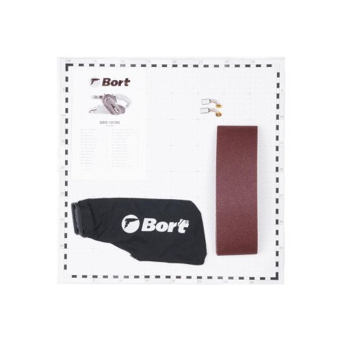 - Рукоять не скользит в руках Специальная накладка обеспечивает антискользящие свойства рукояти ленточной шлифовальной машины BORT BBS-1010N